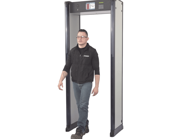 Arco Detector de Metales de 33 Zonas con Anclaje para Fijarse al Piso. Incluye Sensor IR para evitar falsas Alarmas / Certificado por la Administración Federal de Aviación de EE. UU. (FAA).