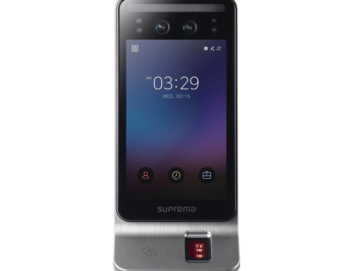 Lector Multi-tecnologia con detector de cubrebocas- Reconocimiento Facial, Huella, Tarjeta Móvil y lector de RFID(125kHz EM & 13.56 Mhz MIFARE) Compatible con BioStar2, Uso para Control de Acceso y Asistencia.